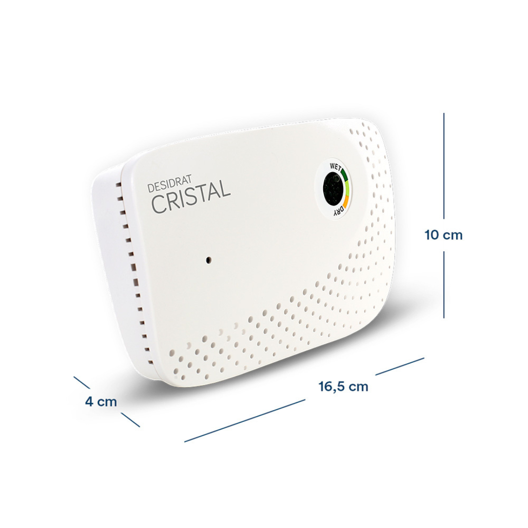 O funcionamento do Desumidificador Cristal é baseado na absorção da umidade através de um compartimento de sílica renovável. Quando a sílica está saturada, portanto, ela muda de cor para indicar que é hora de recarregar. Basta plugar o desumidificador na tomada para renovar a sílica e utilizá-lo novamente, o que o torna extremamente econômico e ecológico.