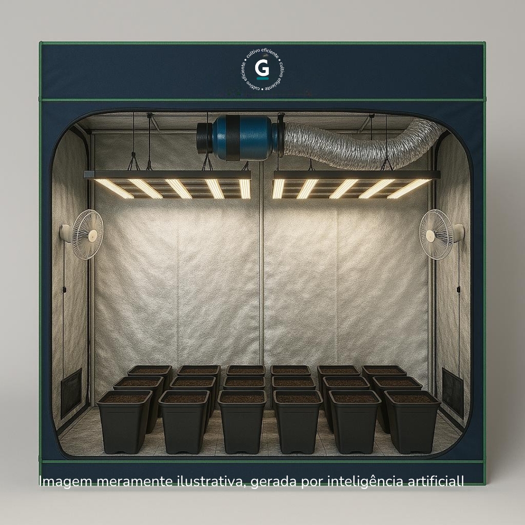Lembre-se que dutos, hangers, tomadas, cabos e outros acessórios opcionais não estão inclusos neste kit. No entanto, você pode encontrar diversos produtos complementares em nosso site para otimizar ainda mais seu sistema de cultivo indoor para 18 plantas.